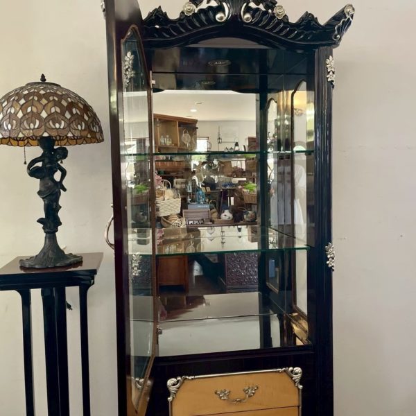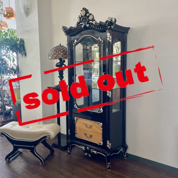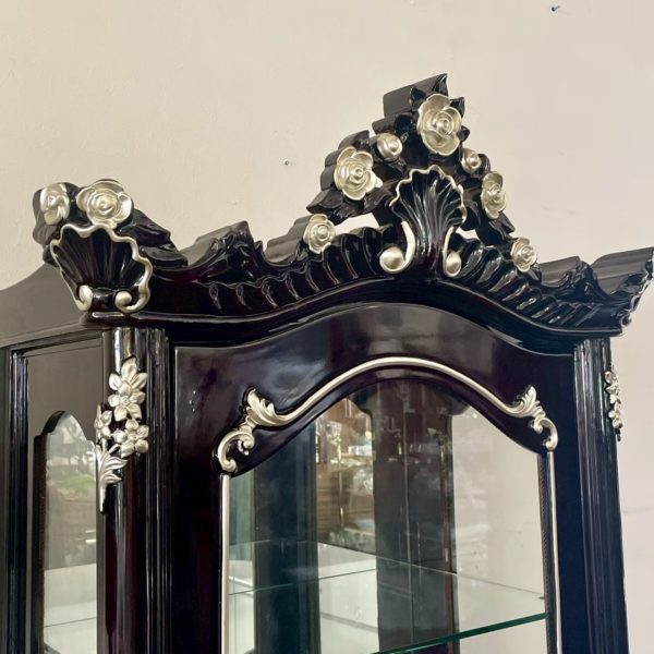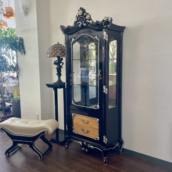 ブラック×シルバーで仕上げられたロココ調の優美なガラスキャビネット
