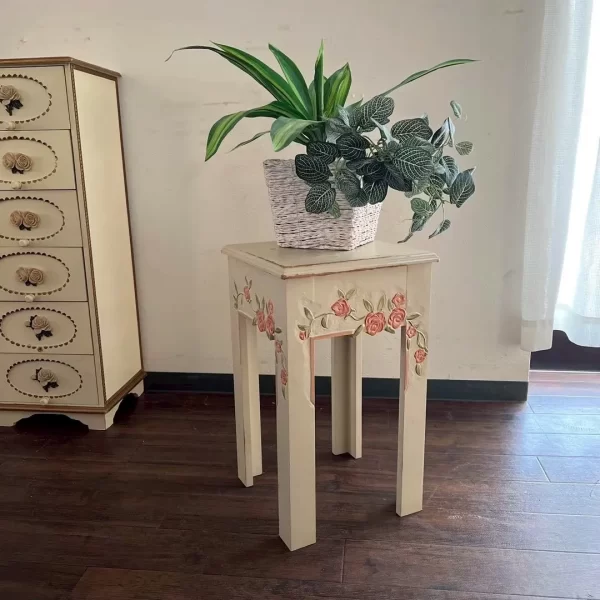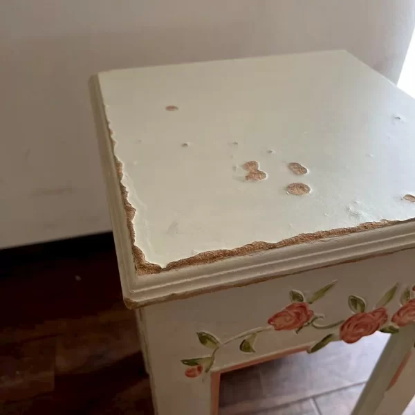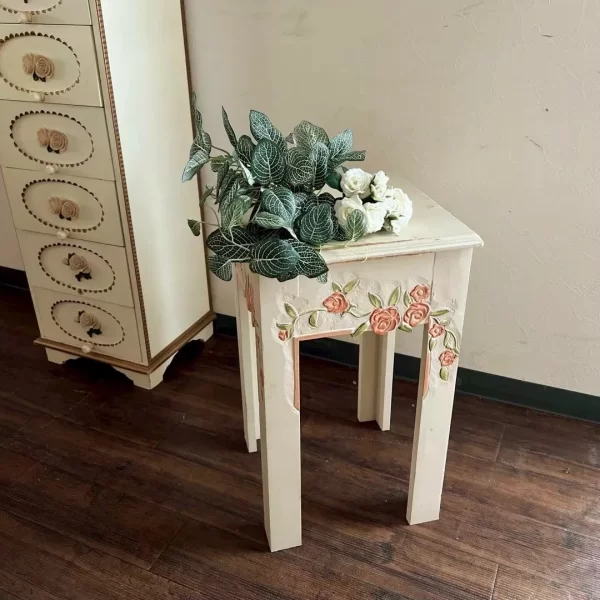 ハンドメイドな雰囲気が素敵なホワイトペイントに、ピンクのローズを描いたキュートな逸品