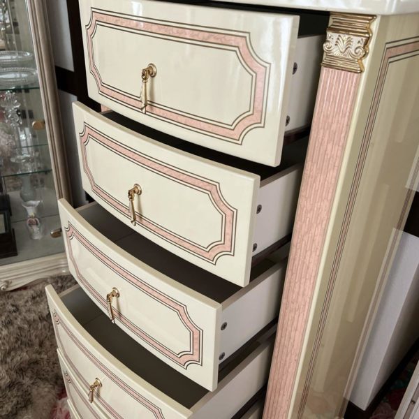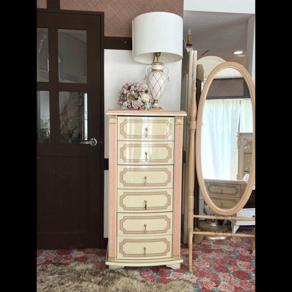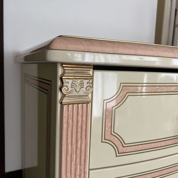 イタリアらしいクラシックで優雅な曲線、ベースのアイボリーカラーにピンクとゴールドのアクセントは上品さと愛らしさを感じさせてくれます。