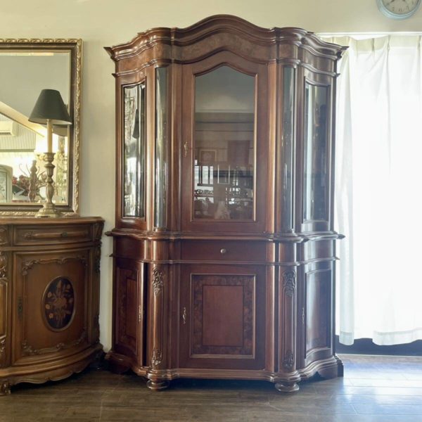 伝統あるイタリアクラシック家具 美しい象嵌細工 キャビネット 艶やかな光沢とエレガントな佇まいが目を惹く素敵な飾り棚