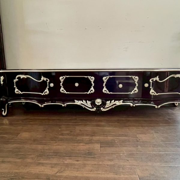 ブラック×シルバーで仕上げられたロココ調の優美なローボード