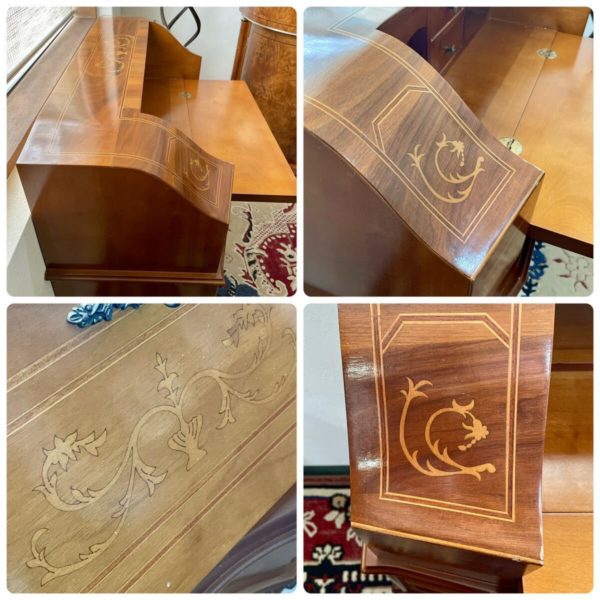 イタリア製 ビューロー 装飾的なディテールと美しい象嵌細工が施され 洗練された雰囲気でエレガントな空間を演出する デスク