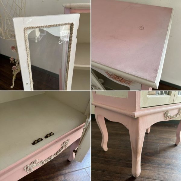 少しシャビーシックなマットホワイトに、淡いピンクがキュートなアクセントになっています。